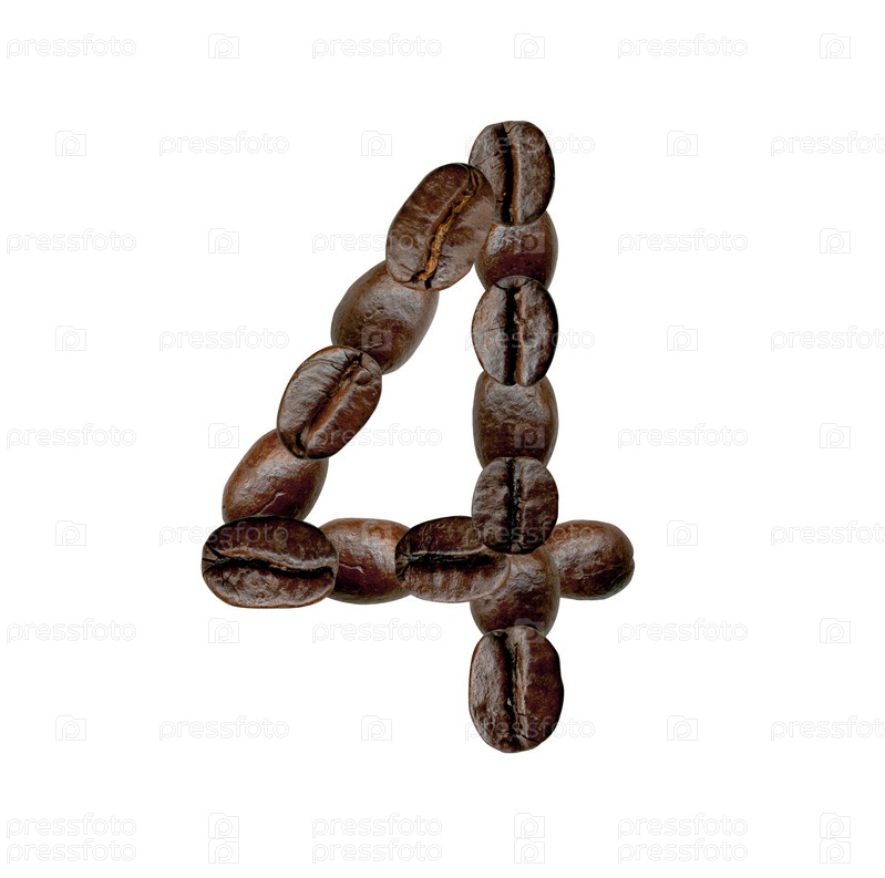 Цифра четыре из кофейных зерен. Иллюстрация на белом фоне