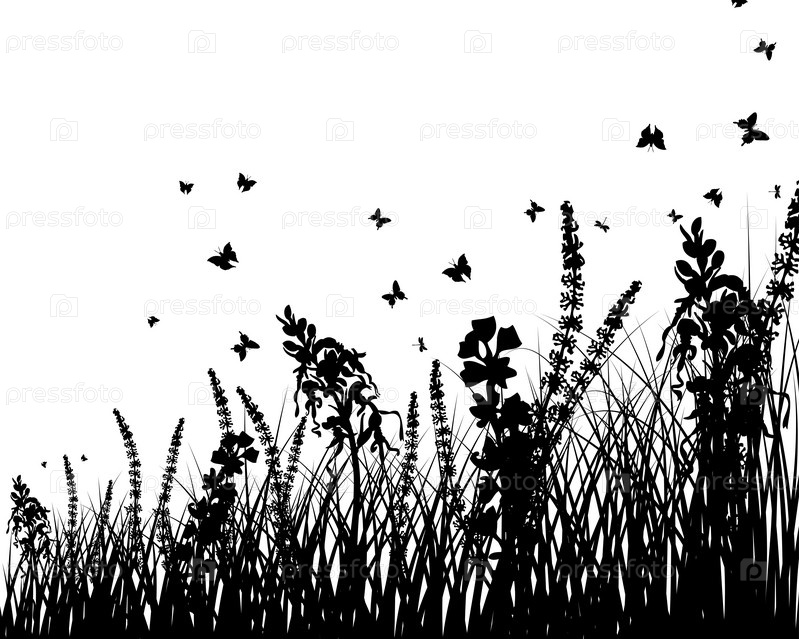 Силуэты травы и цветов на белом фоне