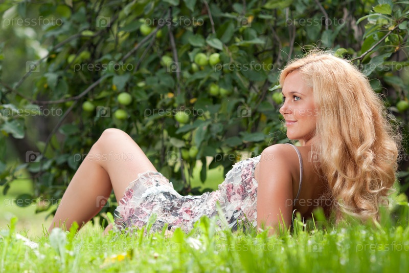 Женщина лежит на траве