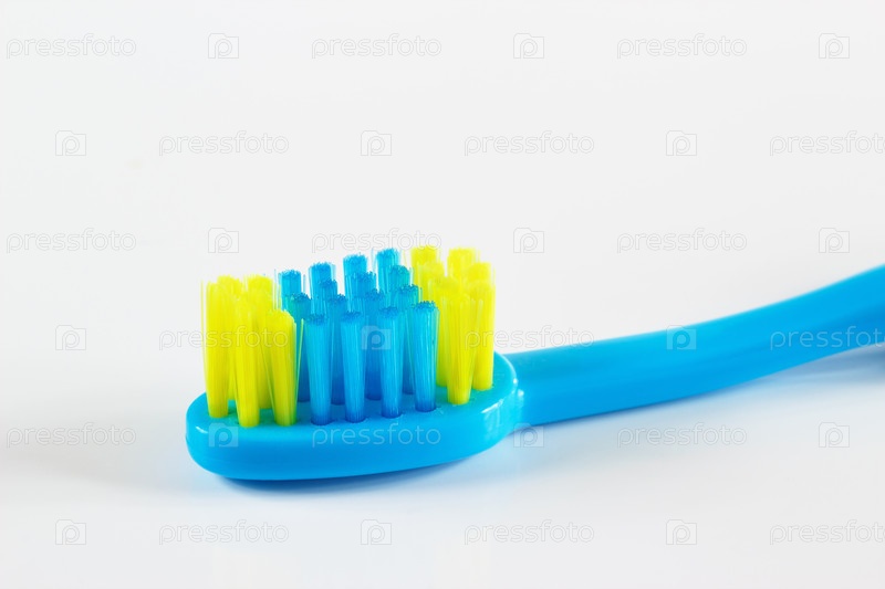 Синяя детская зубная щетка на белом фоне