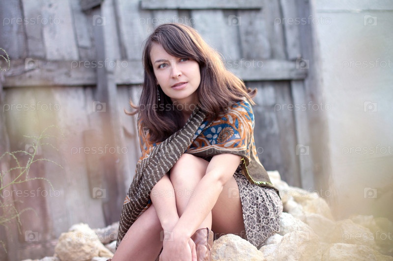 Красивая модель с длинными волосами на свежем воздухе