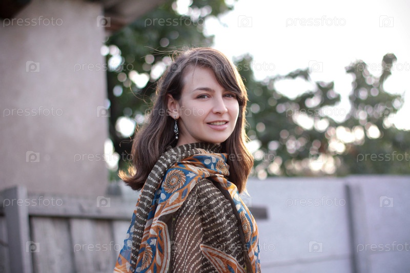 Красивая модель с длинными волосами на свежем воздухе