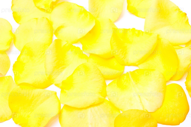 Желтые лепестки роз, изолированные на белом фоне