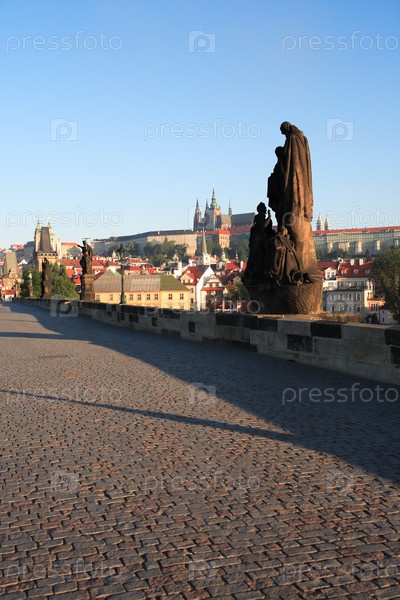 Вид собора Святого Вита от Карлова моста на рассвете, Прага, Чешская Республика