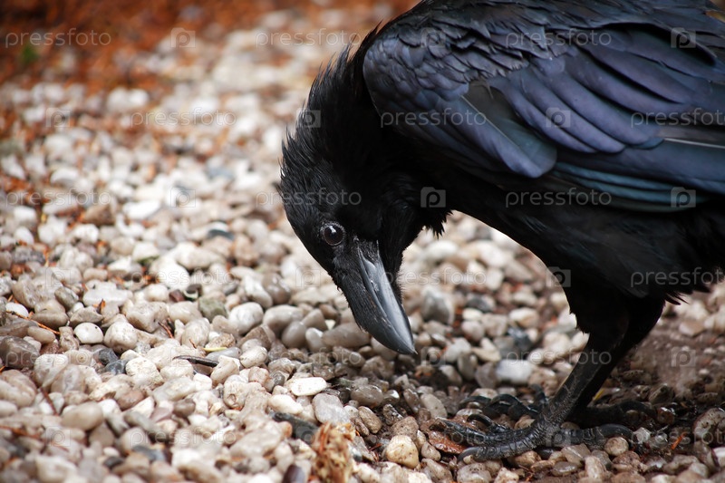 Черный ворон на земле