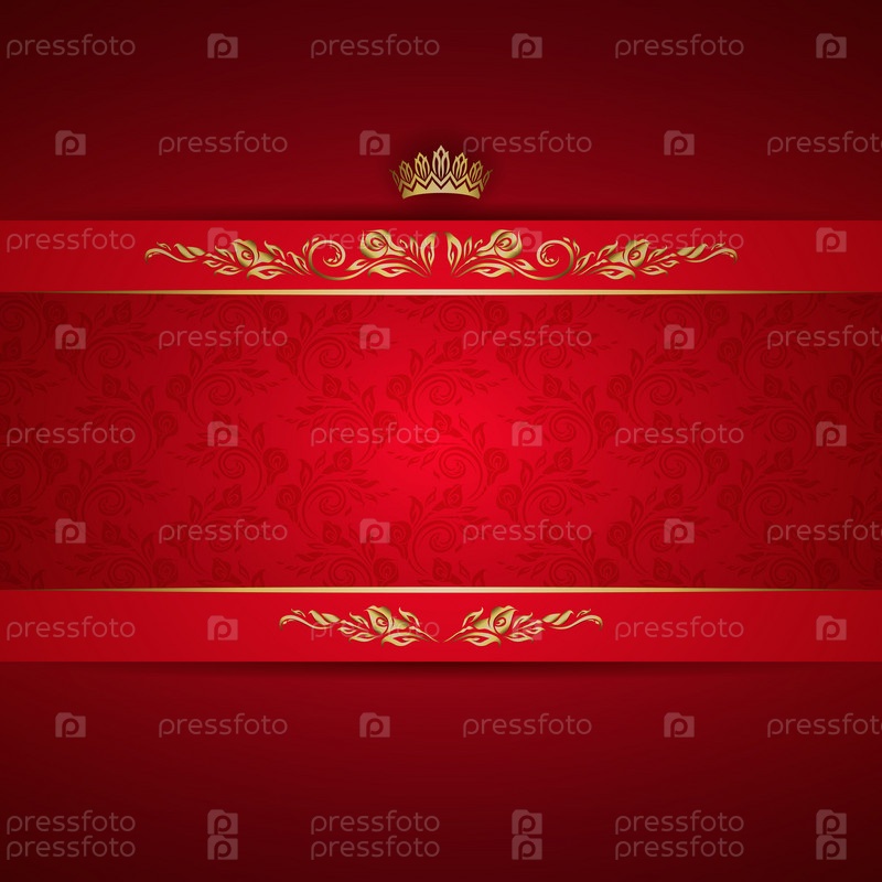 Элегантная золотая рамка с короной на красном фоне
