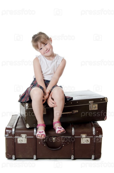 Маленькая девочка на старом чемодане