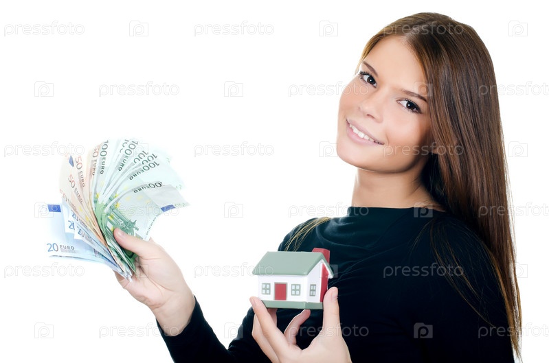 Бизнес-леди с игрушечным домомо и банкнотами