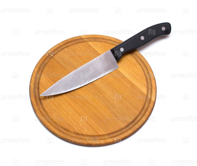 Нож с доской на белом фоне