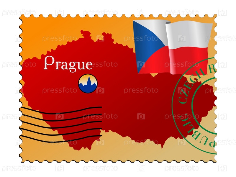 Марка с изображением карты Чешской Республики