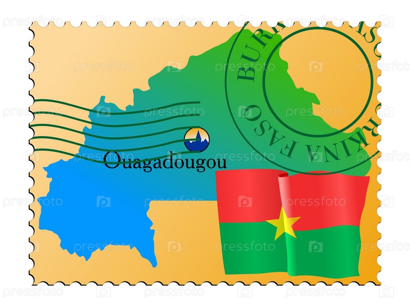 Марка с изображением карты Буркина-Фасо