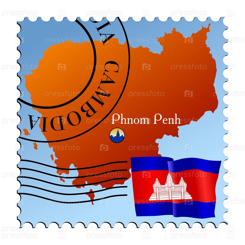 Марка с изображением карты Камбоджи