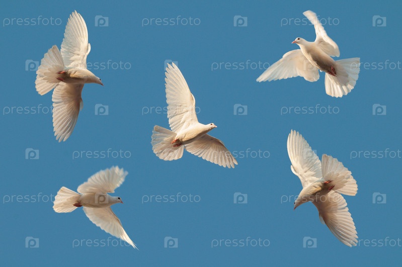 Пять белых голубей в небе