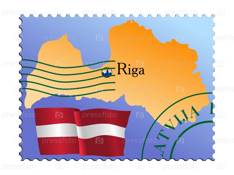 Векторная марка с изображением карты Латвии