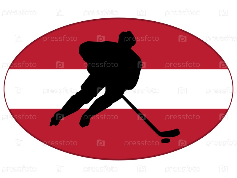 Хоккейный игрок на фоне флага Латвии
