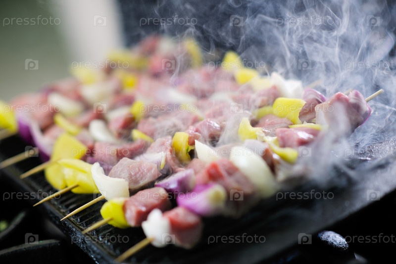 Готовящееся барбекю на кухне ресторана