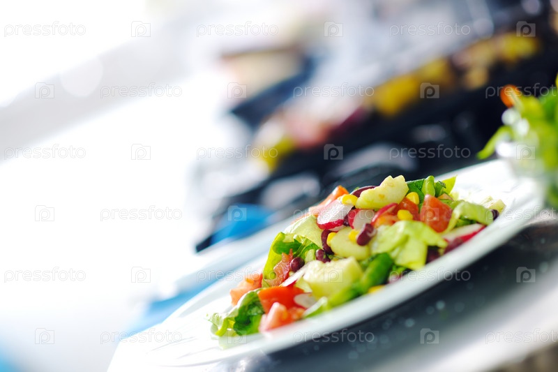 Приготовленный салат на кухне ресторана