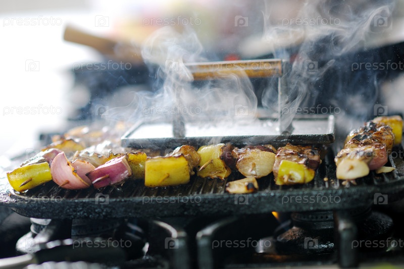 Готовящееся барбекю на кухне ресторана
