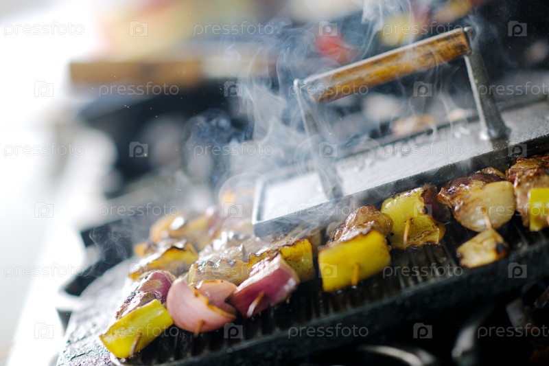 Готовящееся барбекю на кухне ресторана