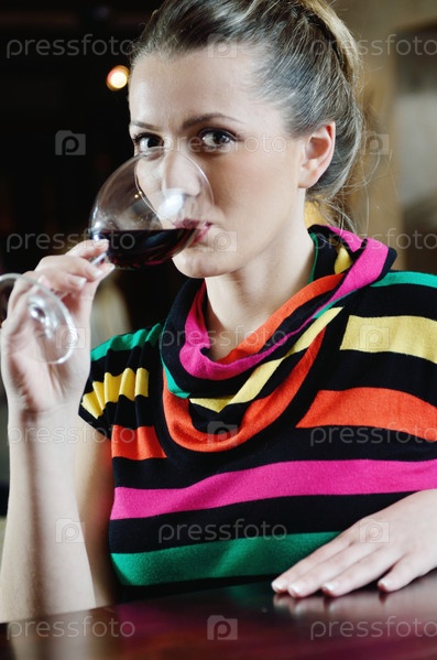 Девушка с бокалом вина в ресторане