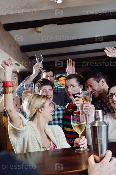 Группа счастливых молодых людей на вечеринке