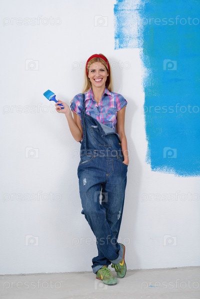 Счастливая женщина делает ремонт