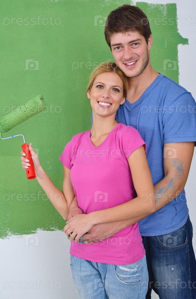 Счастливые молодые люди делают ремонт