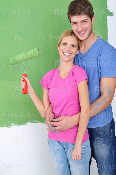 Счастливые молодые люди делают ремонт