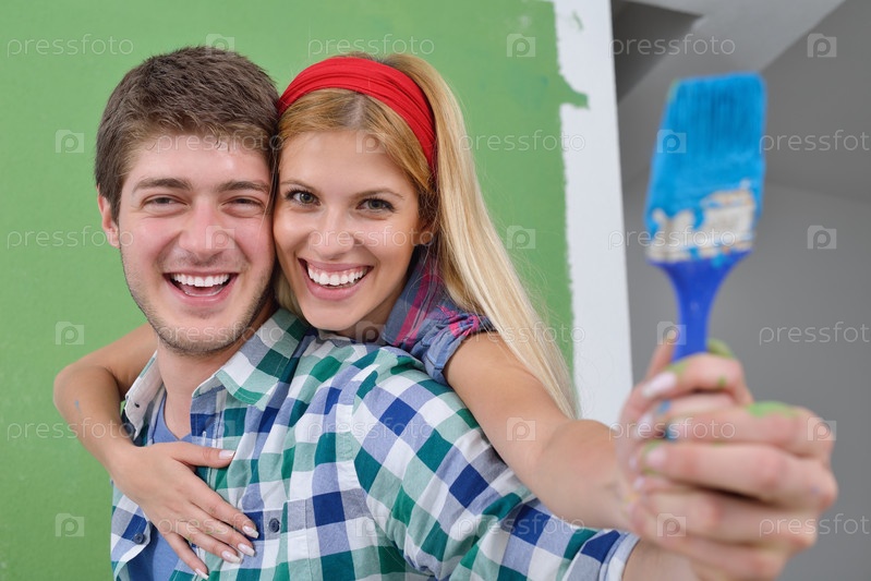 Счастливые молодые люди делают ремонт