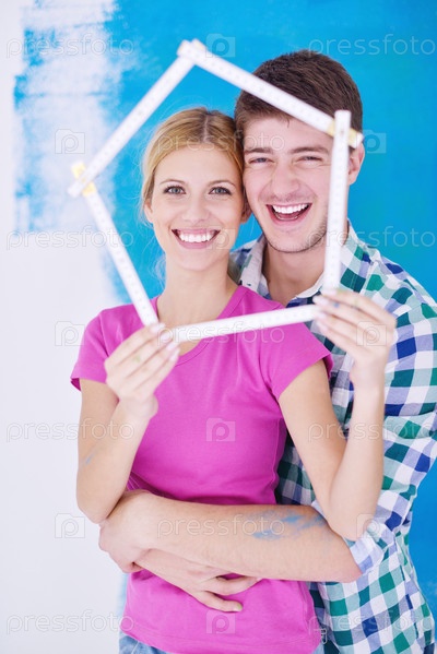 Счастливые молодые люди делают ремонт