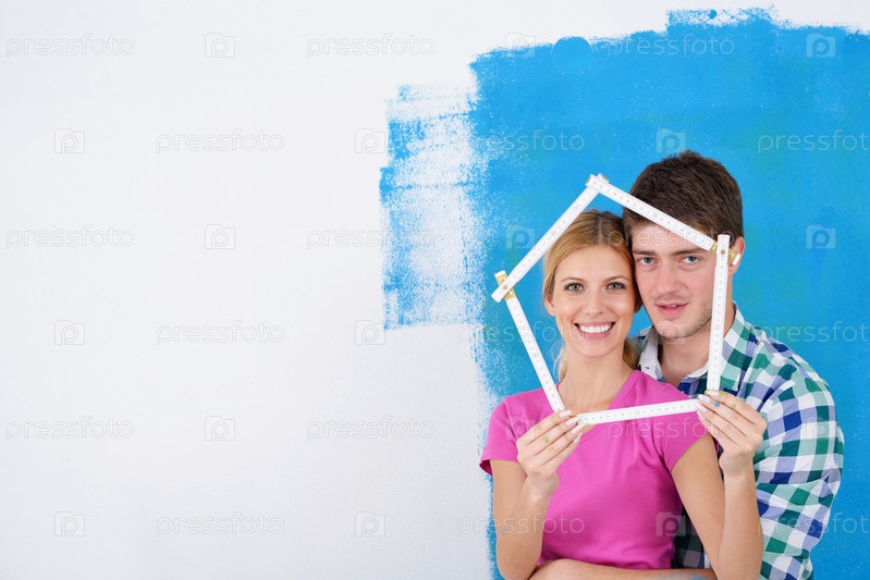 Счастливые молодые люди делают ремонт