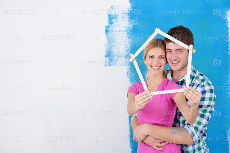 Счастливые молодые люди делают ремонт