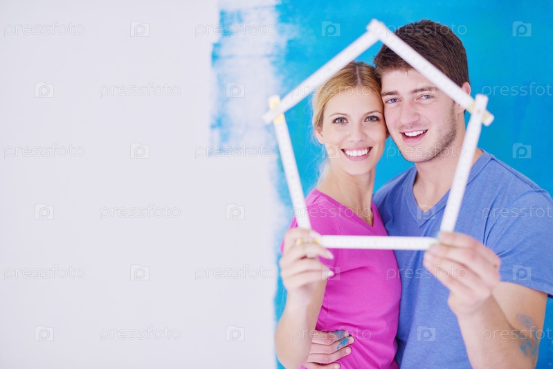Счастливые молодые люди делают ремонт