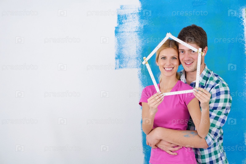 Счастливые молодые люди делают ремонт