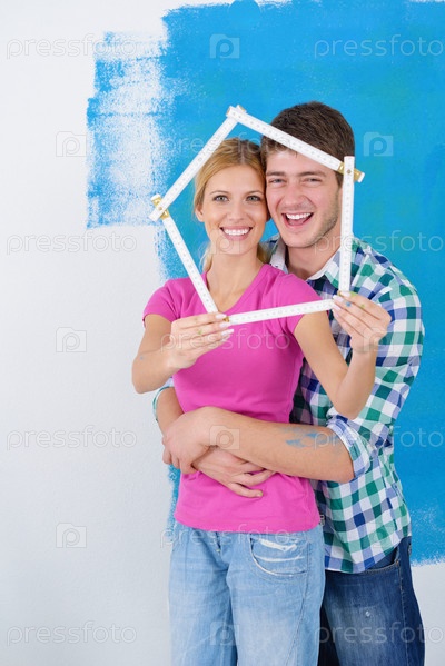 Счастливые молодые люди делают ремонт