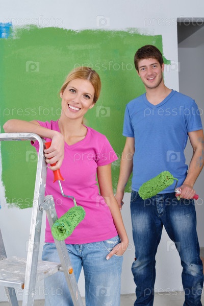Счастливые молодые люди делают ремонт
