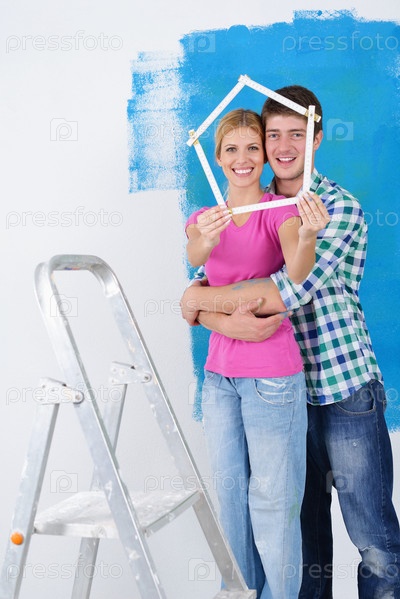 Счастливые молодые люди делают ремонт
