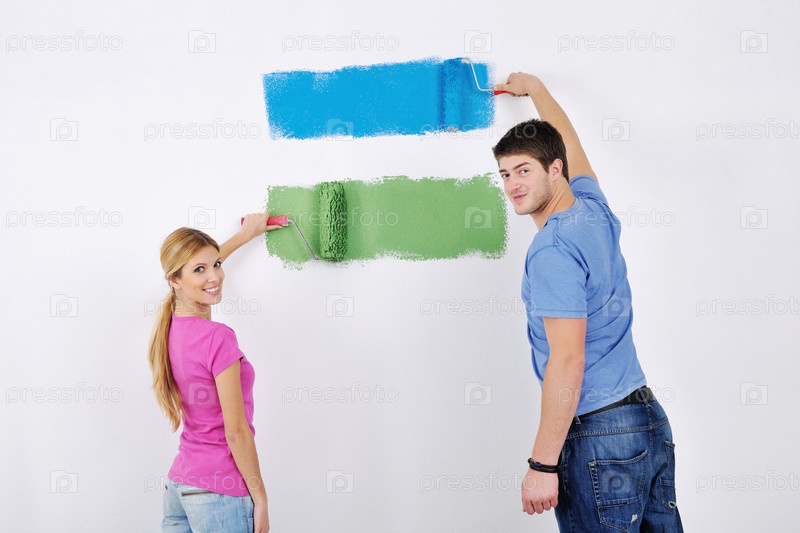 Счастливая молодая пара делает ремонт