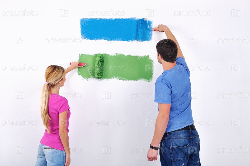 Счастливая молодая пара делает ремонт
