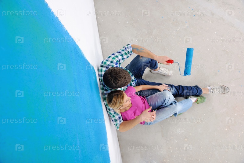 Счастливая молодая пара делает ремонт