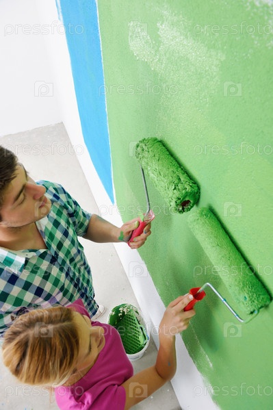 Счастливая молодая пара делает ремонт