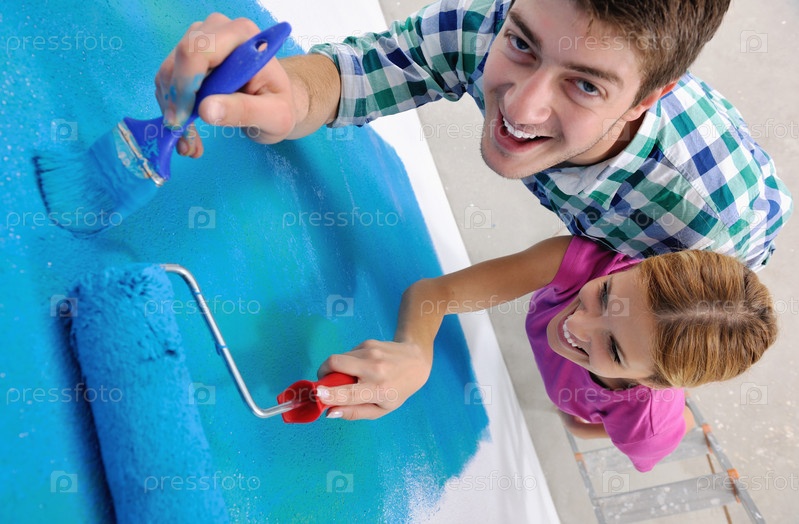 Счастливая молодая пара делает ремонт