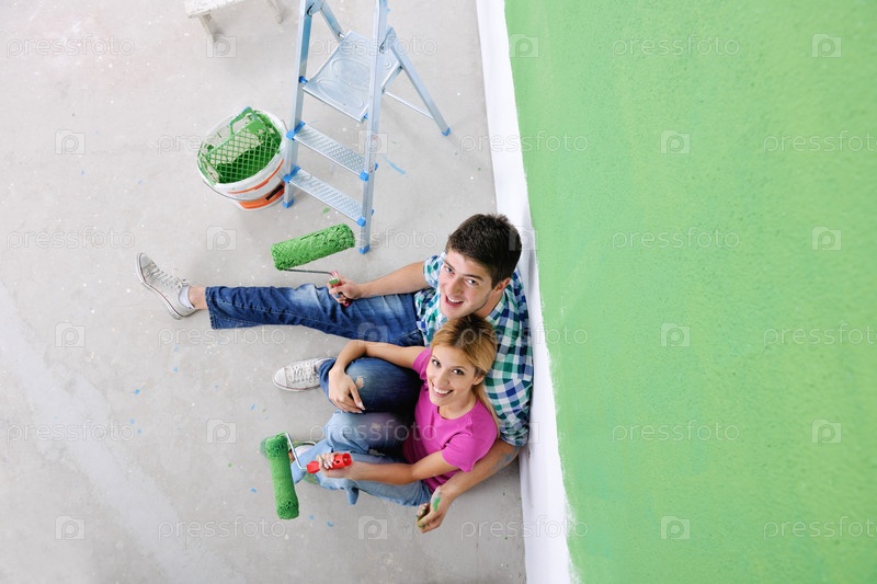 Счастливая молодая пара делает ремонт