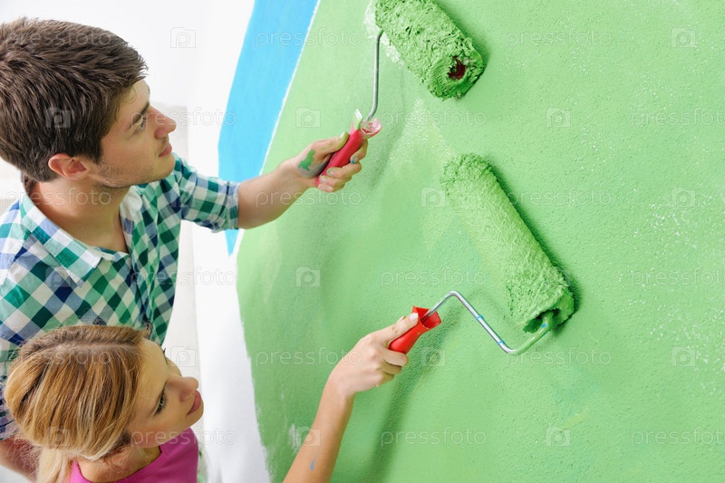 Счастливая молодая пара делает ремонт