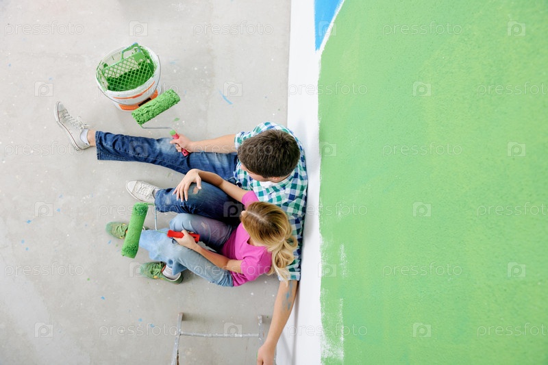 Счастливая молодая пара делает ремонт