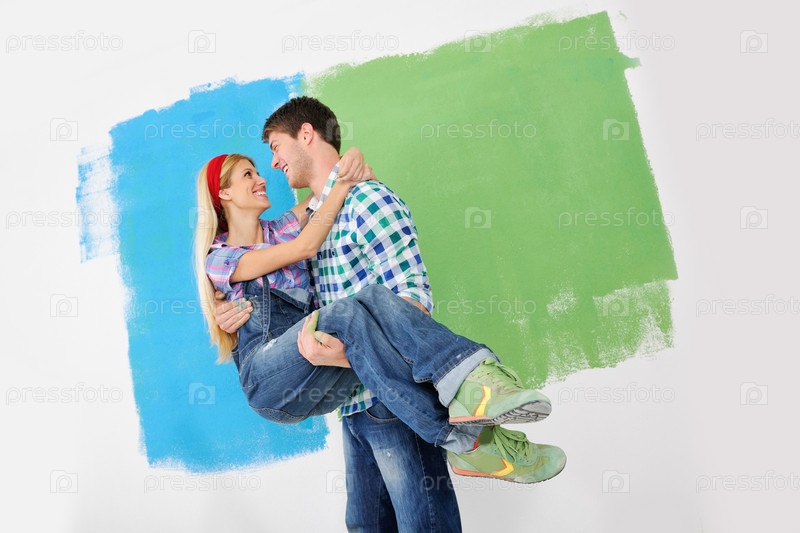 Счастливая молодая пара делает ремонт