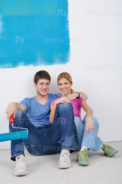 Счастливая молодая пара делает ремонт