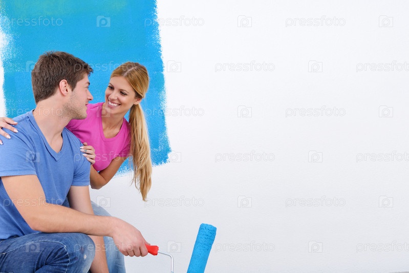 Счастливая молодая пара делает ремонт