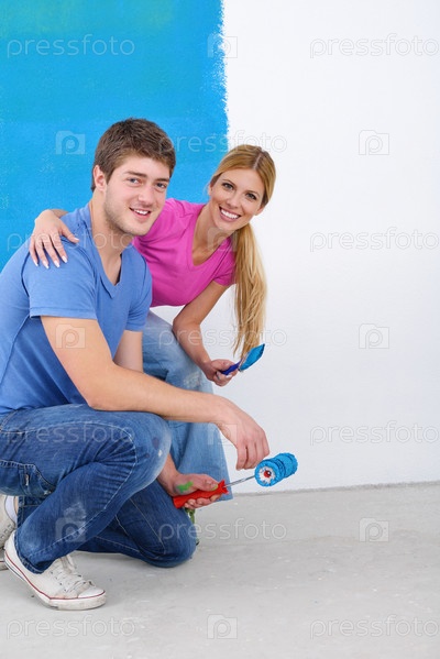 Счастливая молодая пара делает ремонт