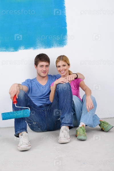 Счастливая молодая пара делает ремонт